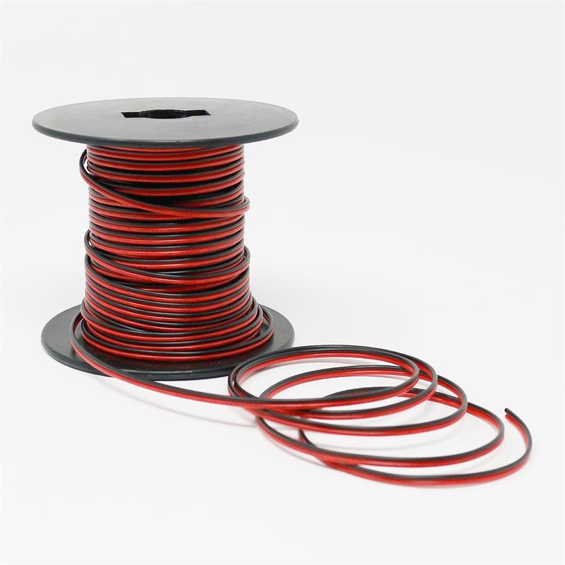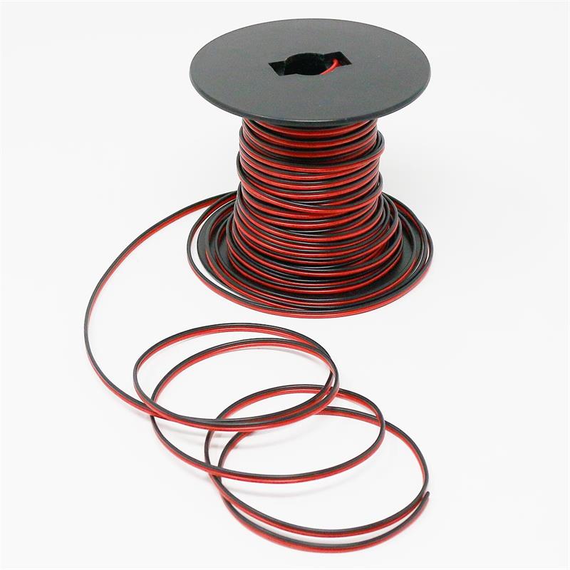 2-adriges Kabel, Länge 25 Meter, Verwendung für LED-Streifen, PVC Isoliermaterial, Leiterquerschnitt 2x0,35mm², Aderfarben schwarz und rot