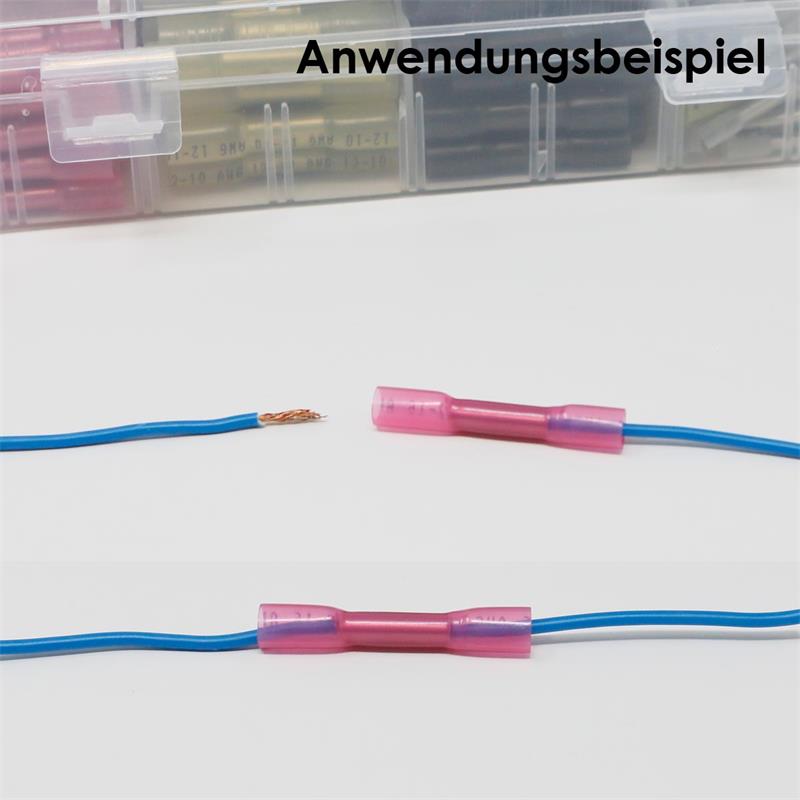 Das Schrumpf-Crimp-Steckverbinder-Set ist die ideale Lösung für Reparaturen und Kabelverbindungen mit Querschnitten zwischen 0,3 und 6 mm². Durch die farbliche Kennzeichnung sind die verschiedenen Größen leicht zuzuordnen. Die im Set enthaltene Crimpzange ermöglicht eine präzise Befestigung der Verbinder auf den abisolierten Kabelenden. Nach dem Crimpen sorgt der integrierte Klebstoff im Schrumpfschlauch, der durch Erhitzen aktiviert wird, für eine besonders zugfeste und wasserdichte Verbindung. Dieses 340-teilige Sortiment bietet eine zuverlässige, flammwidrige und schnellschrumpfende Verbindungstechnik und wird in einer praktischen, transparenten Aufbewahrungsbox geliefert. Die Crimpzange ist aus stabilem Stahl gefertigt und mit ergonomisch geformten Kunststoffgriffen versehen, was eine komfortable Handhabung ermöglicht. Dank der verstellbaren Betätigungskraft kann die Zange flexibel für verschiedene Kabelquerschnitte von 0,25 bis 2,5 mm² eingesetzt werden, was die Vielseitigkeit des Sets zusätzlich erhöht.