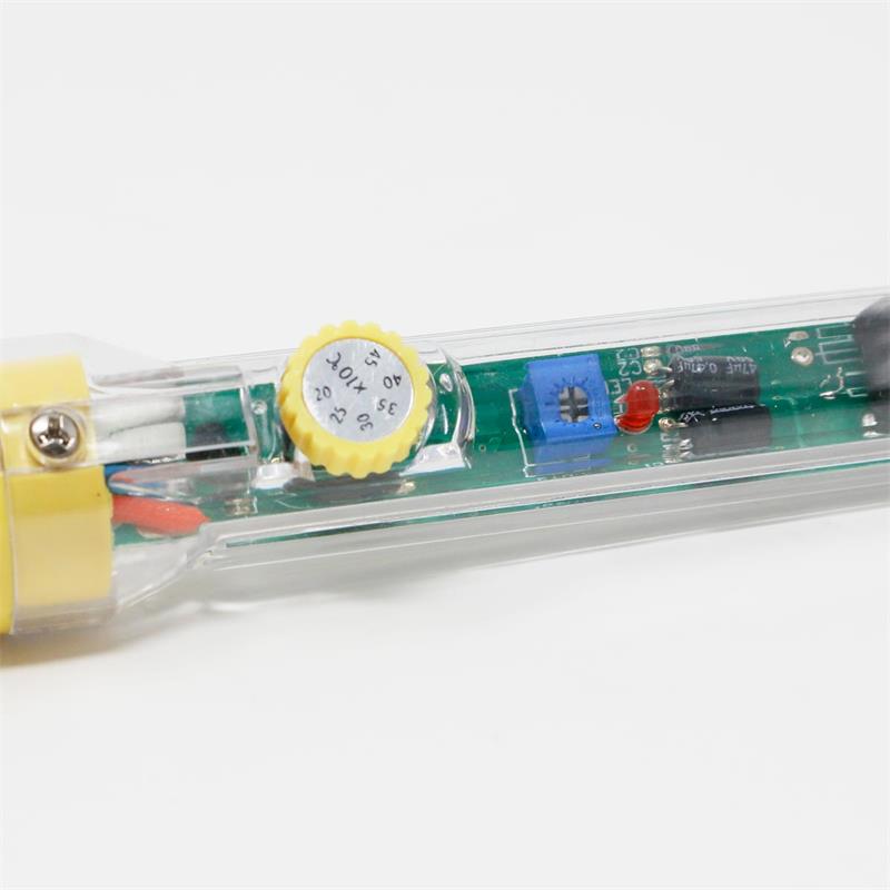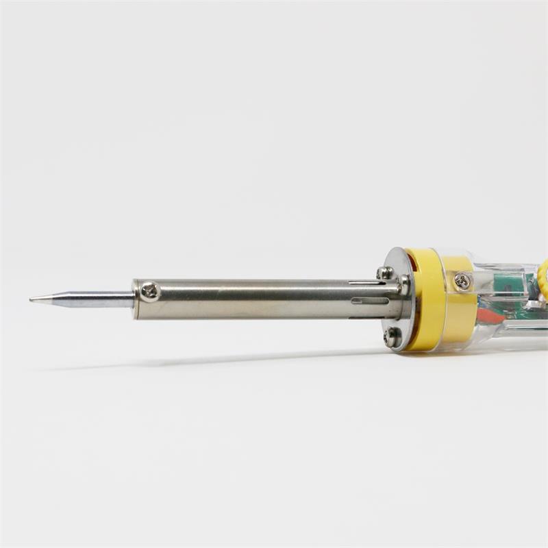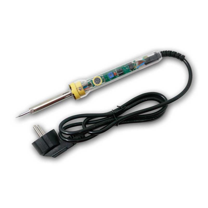 Selbst für anspruchsvollste Lötarbeiten bietet dieser hochwertige Lötkolben die perfekte Lösung. Dieses vielseitige Werkzeug eignet sich sowohl für das präzise Löten als auch das mühelose Entlöten elektrischer und elektronischer Komponenten. Mit einer Stromversorgung von 230V und einer maximalen Leistung von 50W steht dieser Lötkolben für zuverlässige Performance. Die stufenlos einstellbare Temperatur von 200-450°C ermöglicht eine präzise Anpassung an die Anforderungen verschiedener Materialien und Anwendungen. Die 1mm austauschbare Lötspitze garantiert feine und genaue Lötarbeiten. Die hitzebeständige Zuleitung mit einer Länge von 1,2 Metern ist mit einem praktischen Knickschutz und einer zuverlässigen Zugentlastung ausgestattet. Der integrierte Schutzkontakt-Stecker sorgt für eine sichere Anwendung. Das transparente Gehäuse verleiht dem Lötkolben nicht nur einen modernen sondern auch coolen Look. Die robuste Konstruktion und die hochwertigen Materialien garantieren eine lange Lebensdauer und Zuverlässigkeit. Mit diesem Lötkolben meistern Sie jede Lötaufgabe mit Leichtigkeit und Präzision, sei es im professionellen Elektronikbereich oder beim Basteln und Experimentieren im Hobbyraum. Ein unverzichtbares Werkzeug für jeden, der präzise und zuverlässige Lötarbeiten durchführen möchte.