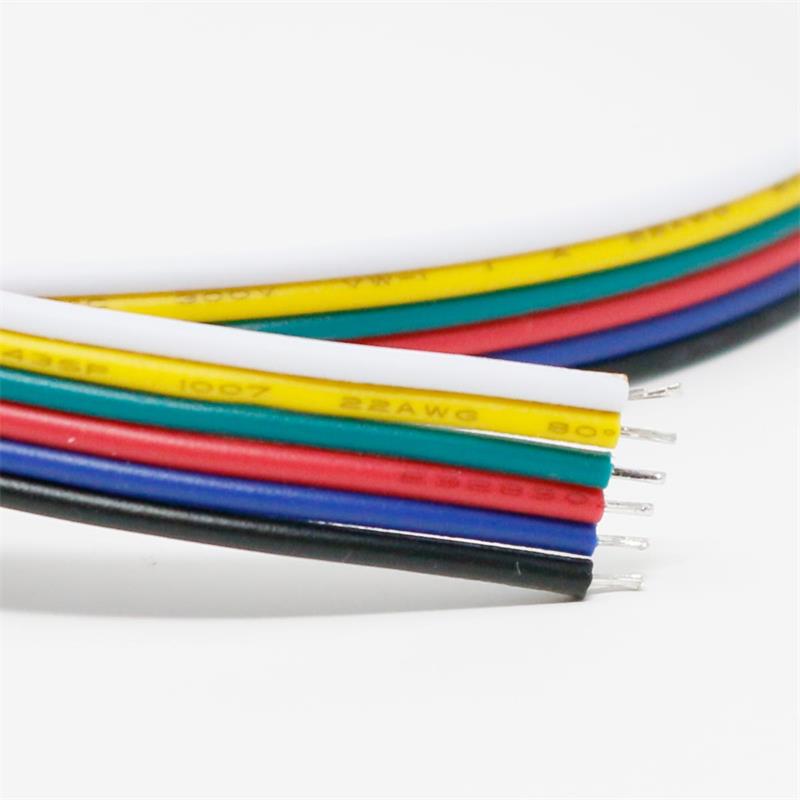 Das 6-polige Flachbandkabel ist speziell zur Stromversorgung und Verbindung von RGB+CCT-LED-Strips entwickelt. Mit einem Kabelquerschnitt von 22AWG und flexiblen Adern in den Farben Weiß, Gelb, Grün, Rot, Blau und Schwarz ist es ideal für den Einsatz in LED-Beleuchtungssystemen. Die PVC-Ummantelung sorgt für zusätzlichen Schutz, während die Flexibilität des Kabels eine einfache Handhabung und individuelle Anpassung ermöglicht. Die offenen Enden auf beiden Seiten ermöglichen ein direktes Auflöten an die LED-Strips, wodurch eine stabile und zuverlässige Verbindung geschaffen wird. Das Kabel ist für eine maximale Spannung von 300V ausgelegt und bietet mit einer Länge von etwa einem Meter die perfekte Lösung für den Anschluss von flexiblen RGB+CCT-Strips im Innenbereich.