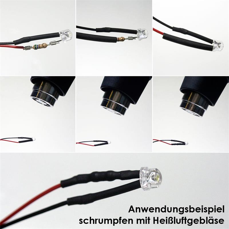 Dieses Schrumpfschlauch-Sortiment bietet eine vielseitige Auswahl an Abschnitten in verschiedenen Farben, ideal für Reparaturen und die Isolierung von Kabeln. Die verschiedenen Größen ermöglichen den Einsatz an unterschiedlichen Kabelquerschnitten, wobei die Schläuche eine Schrumpfrate von 2:1 bieten. Das Schrumpfen erfolgt einfach mit einem Feuerzeug oder einer Heißluftpistole. Mit einer Temperaturbeständigkeit von -20°C bis 130°C und einer Schrumpftemperatur von 80°C bis 125°C, sind die Schläuche zudem flammwidrig und spannungsfest bis etwa 600V, was sie besonders zuverlässig macht. Das 620-teilige Set wird in einer praktischen, transparenten Kunststoffbox geliefert, um eine geordnete Aufbewahrung sicherzustellen.