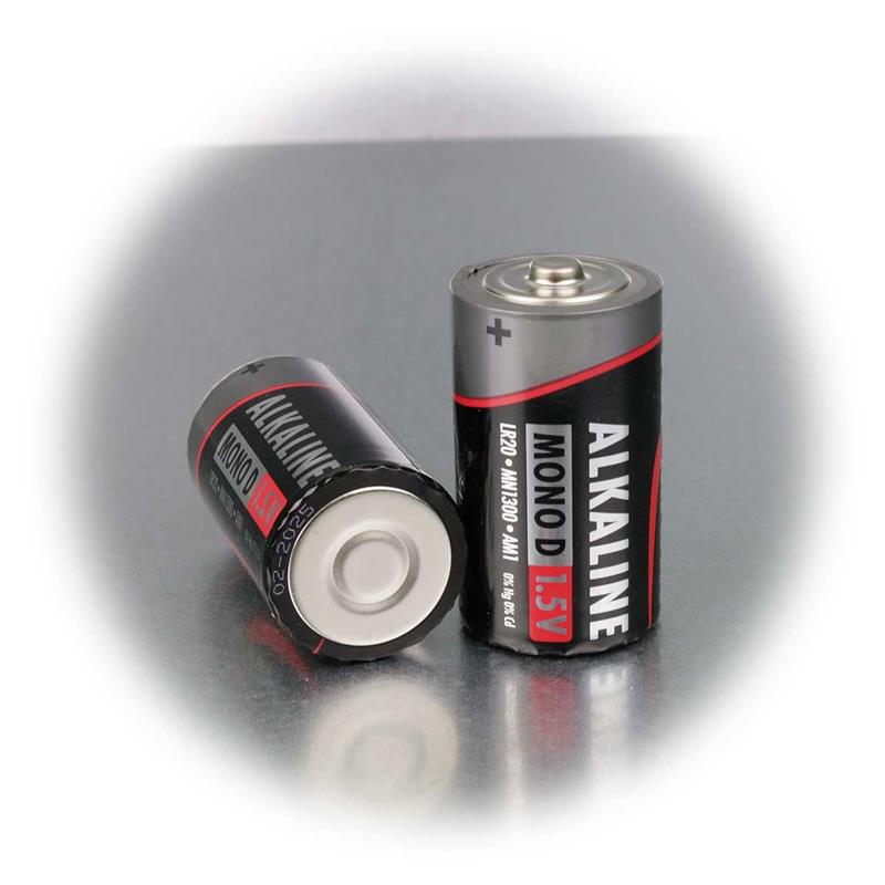 Alkaline-Batterie Mono für z.B. LED Beleuchtungen, Batteriegröße: D/LR20, Lieferung im 2er Blister, Spannung: 1,5V