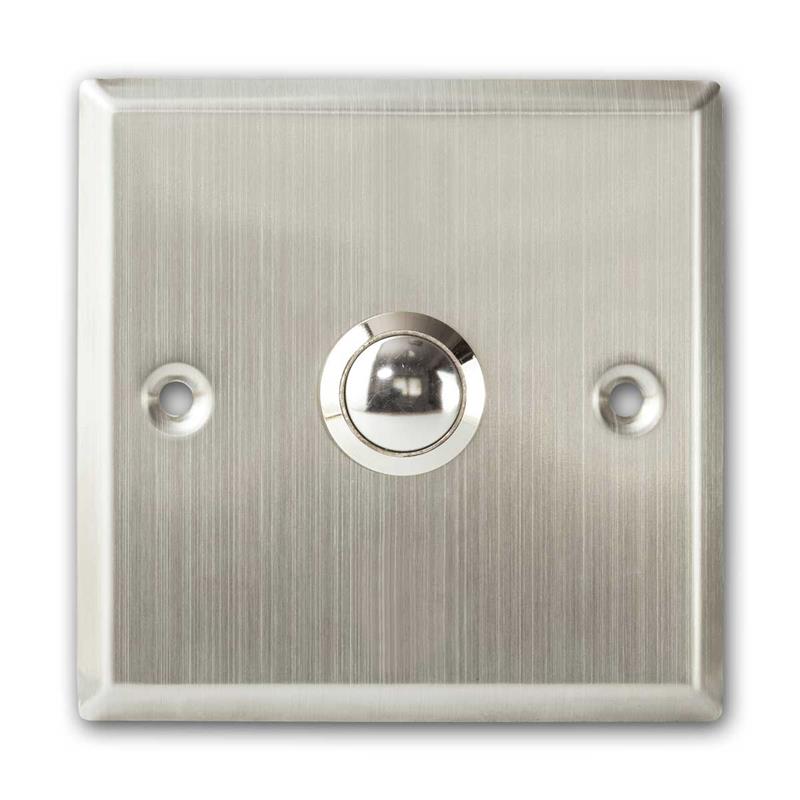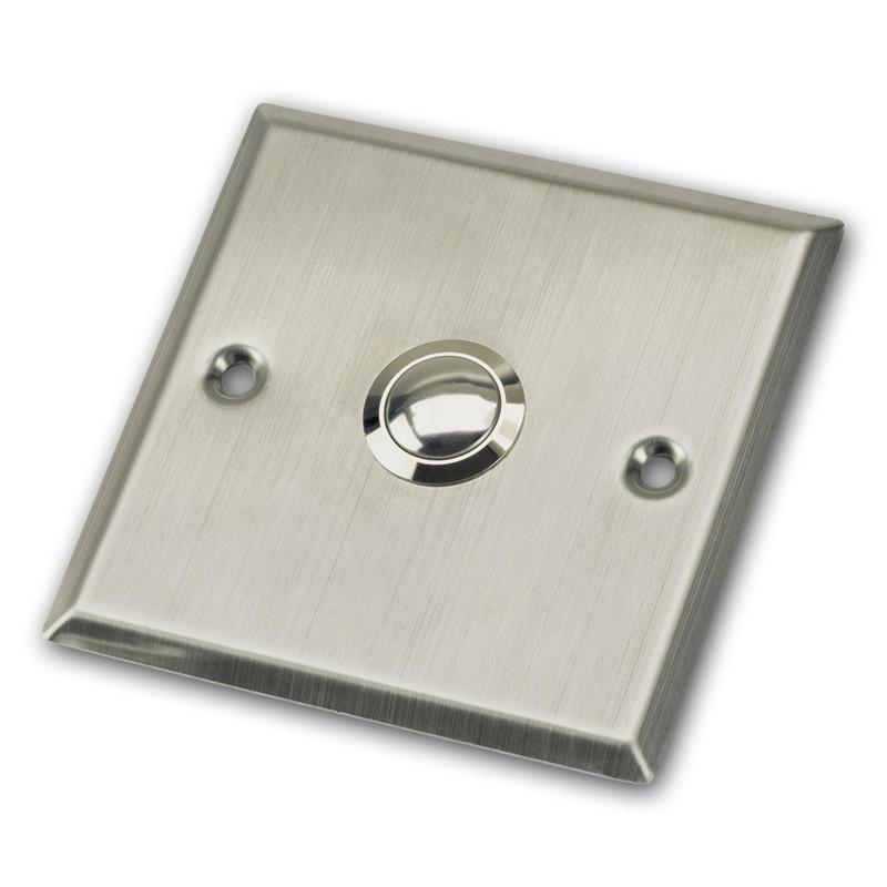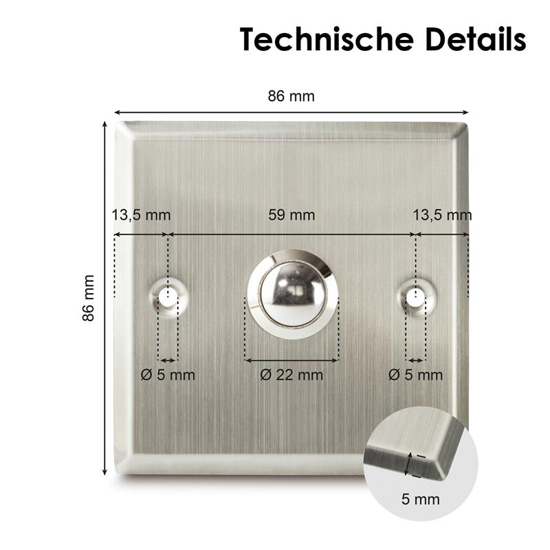 Klingeltaster mit Edelstahl Blende, Spannungen bis zu 24V, Strom max. 1,5A, Maße ca. 86x86x5mm, für Innen- und Außen