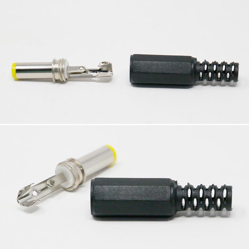 - 1x DC-Stecker 2-Pin, Anschlusstyp 5,5x2,1mm, Lötanschluss und Knickschutz oder