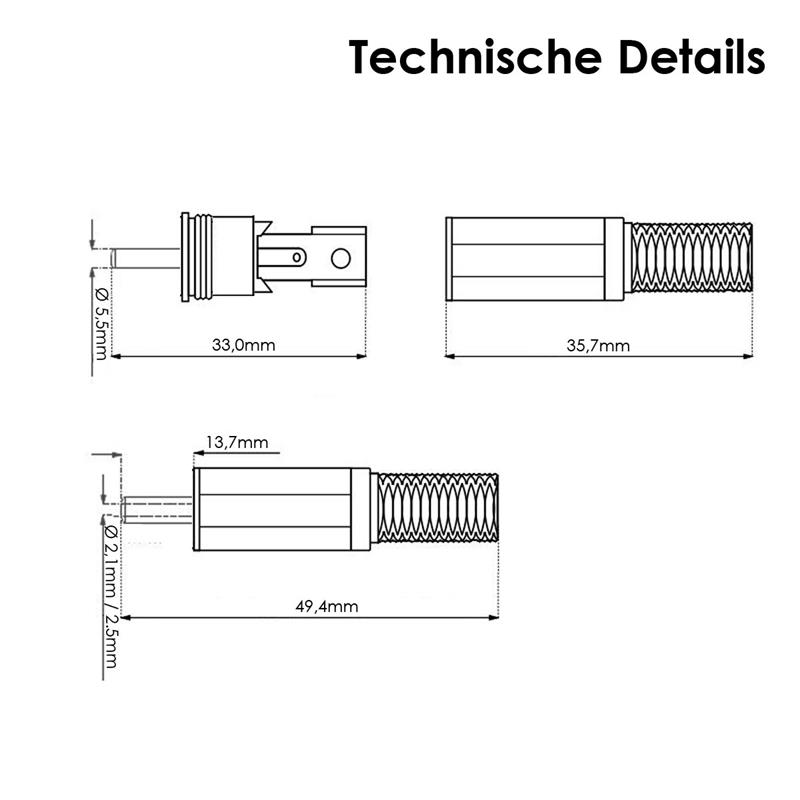 - Pin-Durchmesser: 2,1mm / 2,5mm