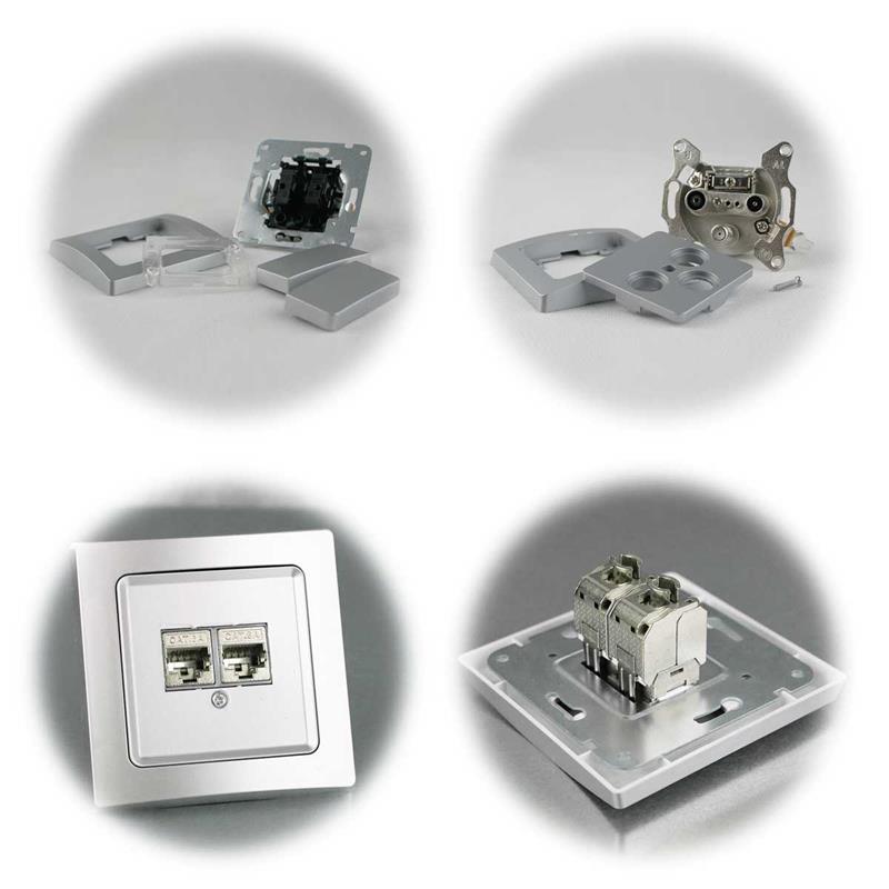 Betrieb an 230V~/50Hz, Antennendose für TV, Radio und Satellit, Unterputzmontage, für Innenräume, Weiß/Silber