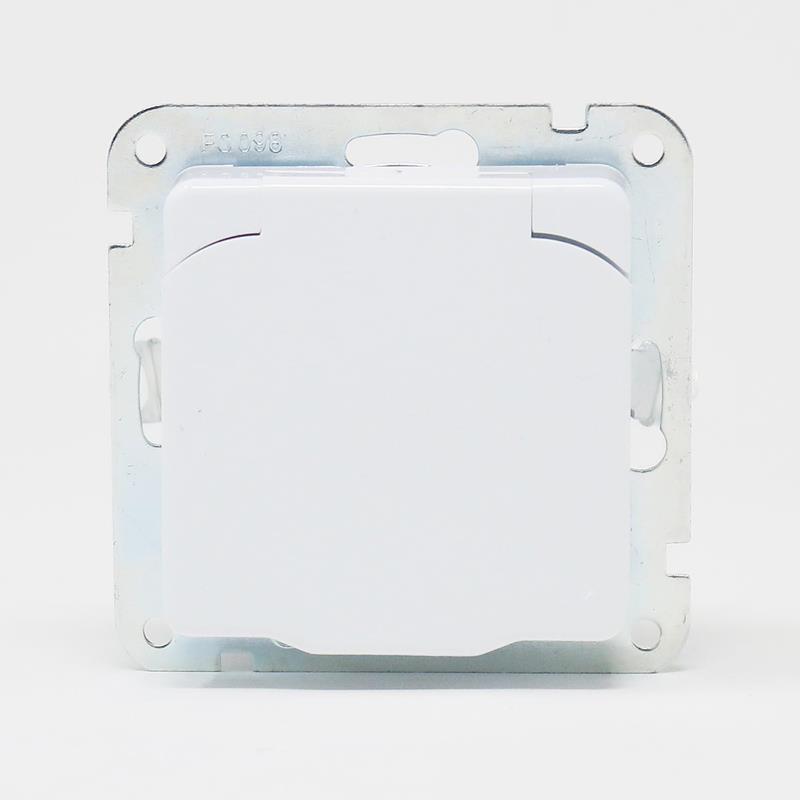 weiße Steckdose mit weißen Deckel ohne oder mit Rahmen, Installation per Schraubanschluss, für Unterputzmontage, Schutzklasse IP40