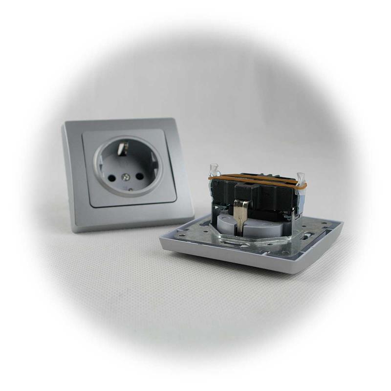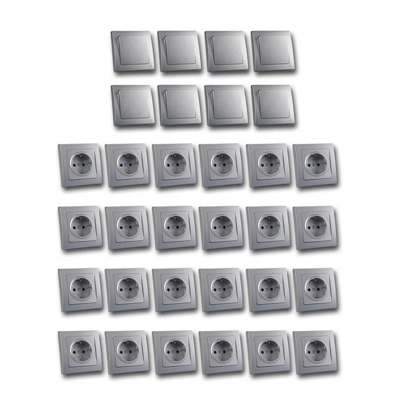 Starter-Set, Schutzkontakt-Steckdosen und Wechsel-Schalter, kompatibel mit Artikeln der DELPHI Serie, silber