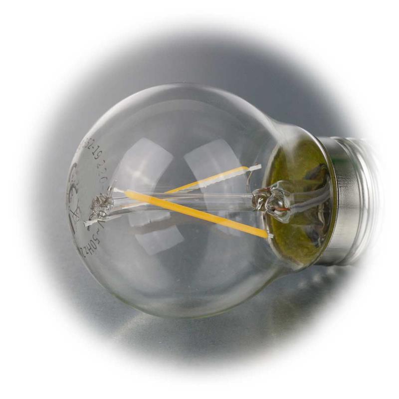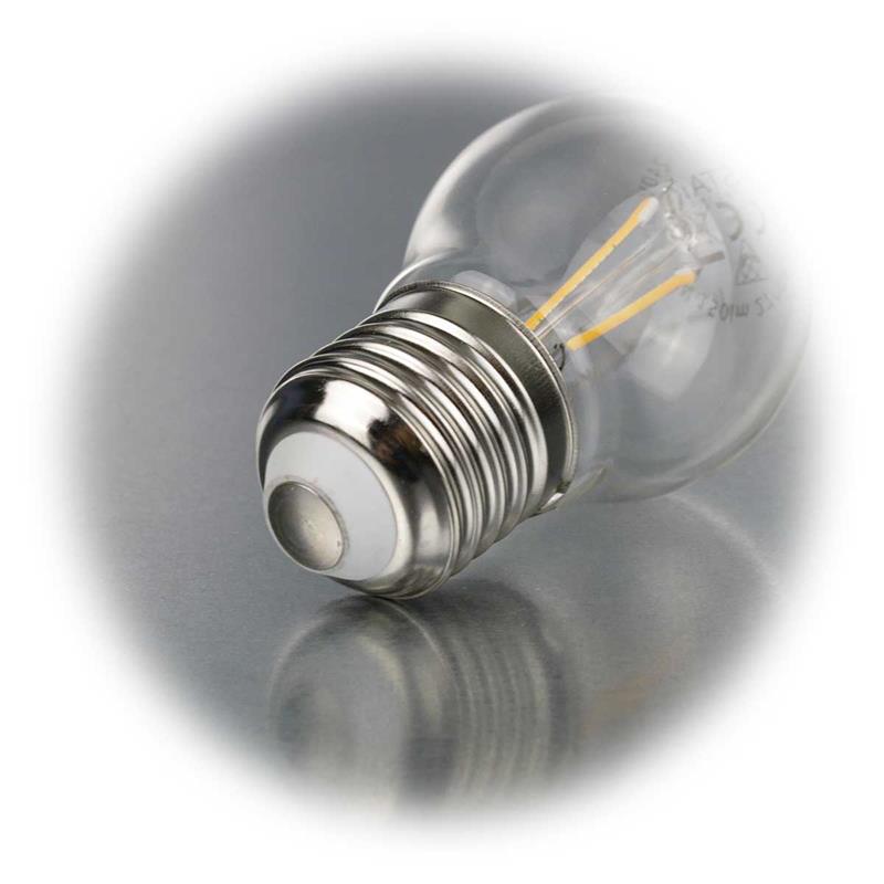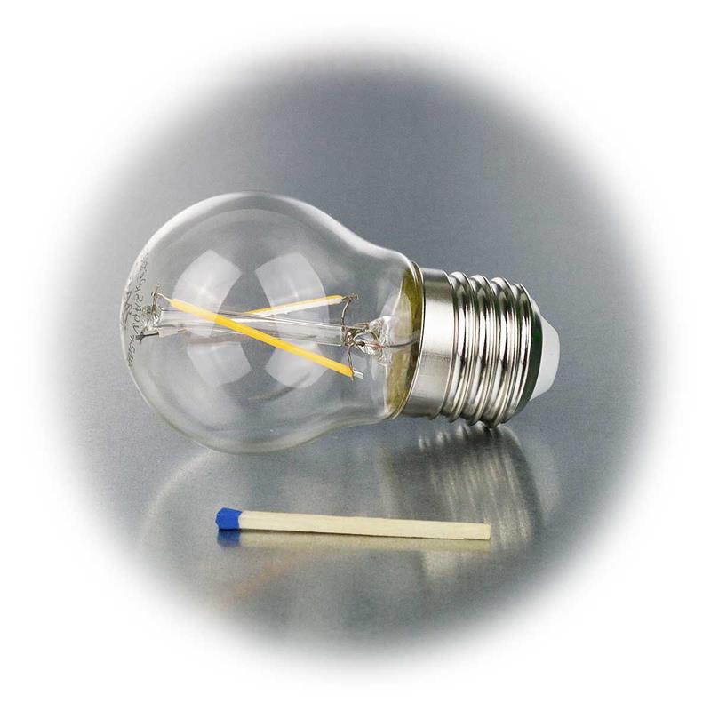 Die E27 LED Filament Birne vereint zeitloses Design mit effizienter LED Technologie. Ihr klares Glasgehäuse erinnert an klassische Glühlampen, während die Filament-LEDs für sparsamen Energieverbrauch von nur 1,5W sorgen und gleichzeitig ein warmweißes Licht mit ca. 15lm ausstrahlen. Das Ergebnis ist eine angenehme, gemütliche Beleuchtung, die Räume stilvoll in Szene setzt. Die innovative Filament-Technik simuliert die traditionellen Glühfäden mit modernsten LED-Chips, die gleichmäßig angeordnet sind und einen 360°-Leuchtwinkel bieten. So entsteht ein harmonisches Lichtbild, das sich ideal für offene Lampenschirme, Pendelleuchten oder dekorative Leuchten eignet.