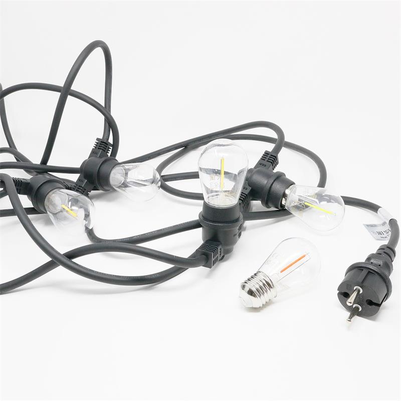 - 1x Lichterkette schwarz, 10x E27 Fassung 230V, 11m, IP44