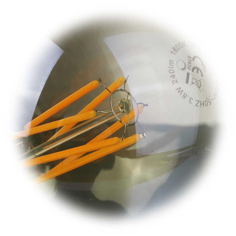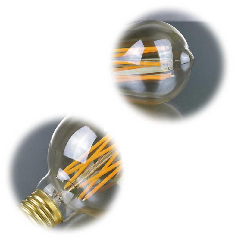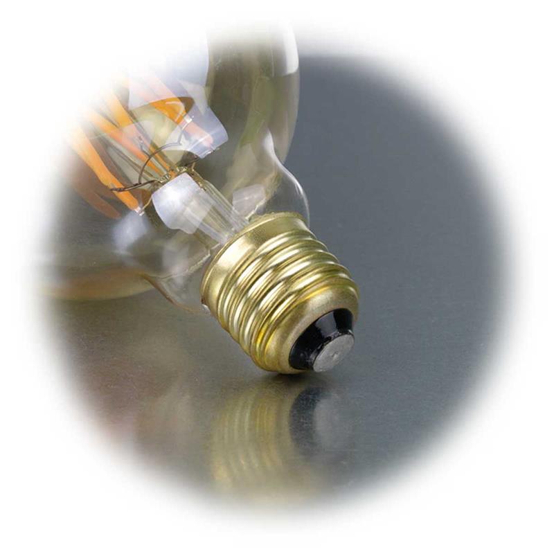 Das E27 LED Leuchtmittel „VINTAGE Filament“ vereint nostalgischen Charme mit moderner Effizienz. Durch die klare Glasabdeckung und die filigranen LED-Filamente entsteht die Optik einer klassischen Glühbirne, während die energiesparende Technik für geringen Stromverbrauch und eine lange Lebensdauer sorgt. Mit nur rund 3,8W Leistungsaufnahme ersetzt das Leuchtmittel herkömmliche 25W Glühlampen und spendet ein angenehm warmweißes Licht, das jedem Raum eine gemütliche Atmosphäre verleiht. Die innovative Filament-Technologie imitiert den Glühfaden alter Lampen, sorgt jedoch gleichzeitig für eine hohe Energieeffizienz und gleichmäßige Lichtverteilung. Durch den großzügigen 360°Abstrahlwinkel wird das Licht rundum abgestrahlt und eignet sich daher besonders für offene Leuchten und dekorative Fassungen. Dank der Dimmfunktion lässt sich die Helligkeit flexibel regulieren, sodass sowohl sanftes Stimmungslicht als auch eine hellere Ausleuchtung möglich sind. Mit einem Lichtstrom von etwa 240lm erzeugt das Leuchtmittel eine stimmungsvolle Beleuchtung, die sich sowohl für Wohnräume als auch für den Einsatz in Gastronomie, Hotels oder Bars eignet.