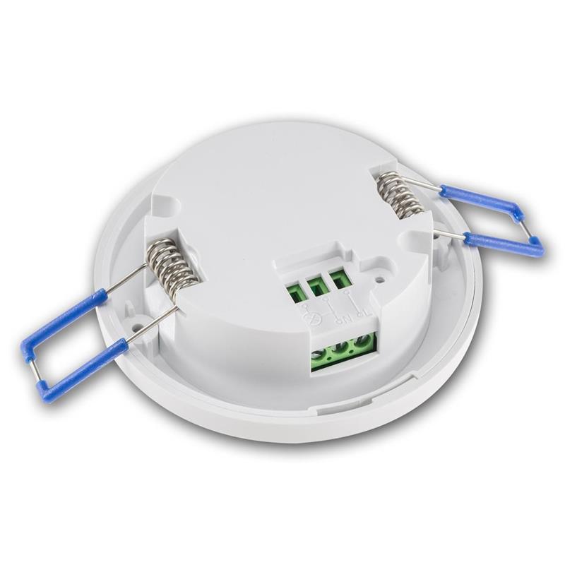 Der besonders flache Einbau-Bewegungsmelder für die Deckenmontage wurde speziell für Innenräume mit sehr geringer Einbautiefe entwickelt. Mit einer benötigten Einbautiefe von nur ca. 15mm eignet sich der Sensor ideal für moderne Wohn- und Zweckräume, in denen wenig Platz in der Zwischendecke zur Verfügung steht – etwa in sanierten Altbauten, abgehängten Decken oder bei Trockenbaukonstruktionen. Alternativ ermöglicht der mitgelieferte Aufbaurahmen eine unkomplizierte Aufputz-Montage, sodass der Bewegungsmelder auch dort eingesetzt werden kann, wo ein Deckenausschnitt nicht möglich oder nicht gewünscht ist. Dabei bleibt das Erscheinungsbild stets dezent und einheitlich. Der integrierte PIR-Sensor erfasst Bewegungen in einem 360° Erfassungswinkel und erreicht eine Reichweite von bis zu 8m. Dadurch wird der Raum gleichmäßig und zuverlässig überwacht – ideal für Flure, Treppenhäuser oder Durchgangsbereiche, in denen das Licht beim Betreten automatisch eingeschaltet werden soll. Das erhöht nicht nur den Komfort, sondern auch die Sicherheit, etwa bei Dunkelheit oder nachts.