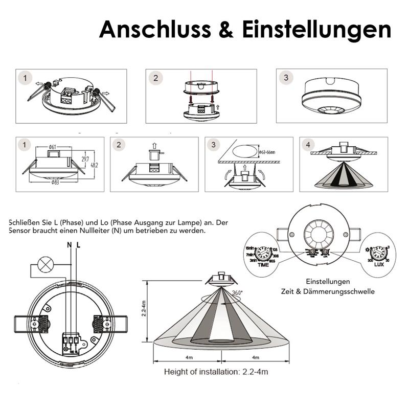 - empfohlene Installationshöhe: ca. 2,2 bis 4m