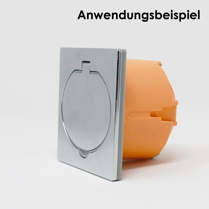 Schutzkontakt-Steckdose mit Deckel aus Edelstahl,