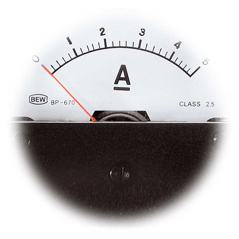 Einbaumeßinstrument 0–5A DC, Abmessungen: ca. 71x60x12mm, analoge Anzeige, Feineinstellung der Nadel
