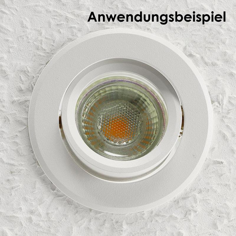 Auch in der Farbgestaltung zeigt sich der Einbaustrahler vielseitig: Die weiße Ausführung wirkt besonders zurückhaltend und fügt sich nahezu unsichtbar in helle Decken ein. Sie unterstützt ein ruhiges, harmonisches Gesamtbild und eignet sich hervorragend für minimalistische oder klassische Wohnkonzepte, bei denen das Licht im Vordergrund stehen soll. Die Variante in gebürstetem Aluminium setzt hingegen bewusst Akzente. Die feine, metallische Oberfläche reflektiert das Licht dezent und verleiht dem Raum eine moderne, hochwertige Anmutung. Besonders in zeitgemäßen, technisch inspirierten oder industriellen Einrichtungsstilen entfaltet diese Ausführung ihre volle Wirkung. Flexible Kaufoptionen bieten zusätzlichen Mehrwert: Als Einzelartikel eignet sich der Einbaustrahler optimal für gezielte Ergänzungen, den Austausch einzelner Spots oder kleinere Projekte. Die Sets mit 3, 5 oder 10 Stück ermöglichen hingegen eine einheitliche Ausstattung größerer Flächen und sorgen für ein stimmiges Gesamtbild bei gleichzeitig attraktivem Preis-Leistungs-Verhältnis. Gerade bei Neubauten, Renovierungen oder umfangreichen Lichtkonzepten bieten die Mehrfachsets eine effiziente und wirtschaftliche Lösung. Im Einsatz überzeugt der Strahler durch seine Vielseitigkeit: In der Küche sorgt er für präzises Arbeitslicht auf Arbeitsflächen, im Wohnzimmer setzt er gezielte Lichtakzente für Möbel oder Dekorationen, während er im Flur oder Schlafzimmer eine angenehme Grundbeleuchtung schafft. Auch in gewerblichen Bereichen eignet er sich ideal zur Präsentation von Produkten oder zur strukturierten Lichtführung. In Kinderzimmern ermöglicht die Schwenkbarkeit eine flexible Anpassung an unterschiedliche Bedürfnisse und Nutzungssituationen. Die Lieferung erfolgt ohne Leuchtmittel und ohne Fassung, wodurch maximale Freiheit bei der Auswahl der passenden Lichtquelle gegeben ist.