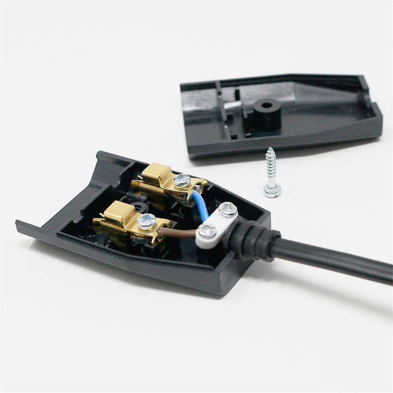 Euro-Flachkupplung aus Kunststoff, Schraubanschluss, für schutzisolierte Geräte mit Leitungen 2×0,75mm², nur für Innenbereich