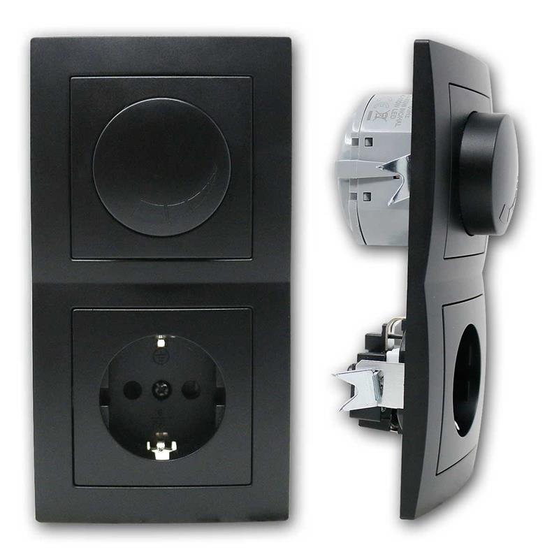 - 1x FLAIR Dimmer mit Steckdose, 250V~/300W ohmsche Last, schwarz, mit Rahmen