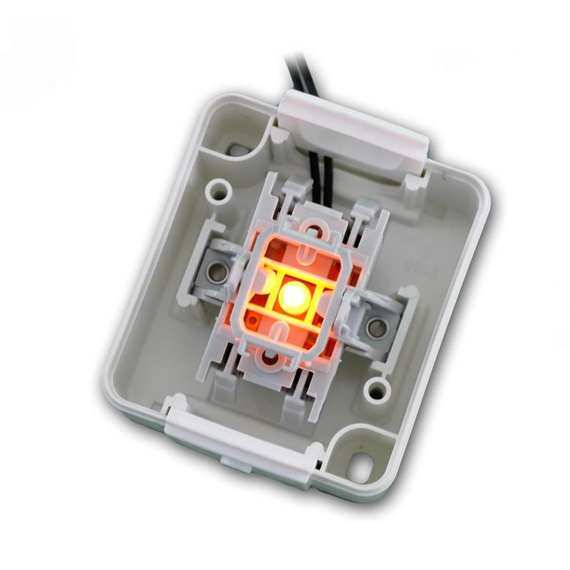 Kontroll-Schalter mit Aufputz-Rahmen, BV Steckklemmen, Leistungen 230V/10A, grau/weiß, spritzwassergeschützt