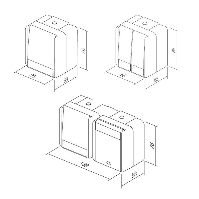 - Maße Doppeldose horizontal: ca. 138x76x53mm (HxBxT)
