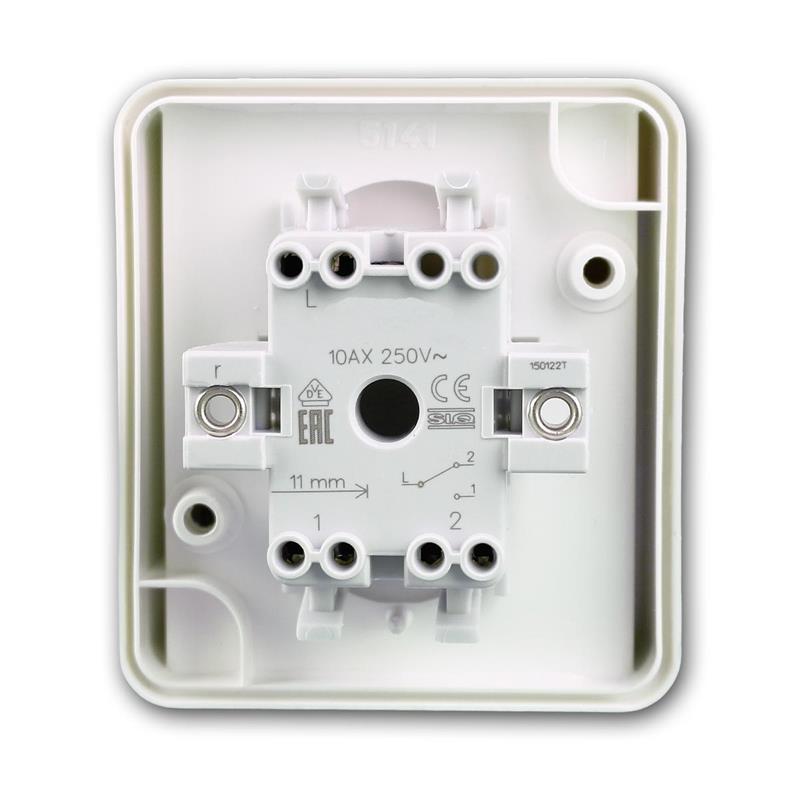 Wechselschalter mit Aufputz Rahmen, BV Steckklemmen, Leistungen 230V/10A, spritzwassergeschützt, grau/ weiß