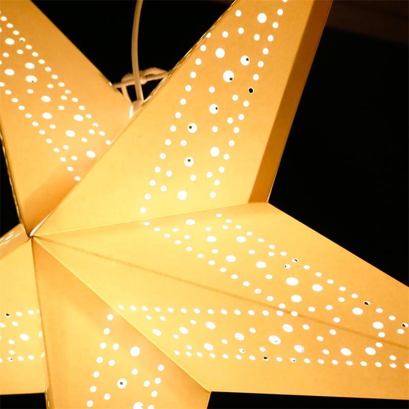 faltbarer 5-zackiger Papierstern "HEAVEN" in creme, Sterndurchmesser 55cm, inkl. 3,5m Stromkabel mit E14 Fassung, mit und ohne Beleuchtung