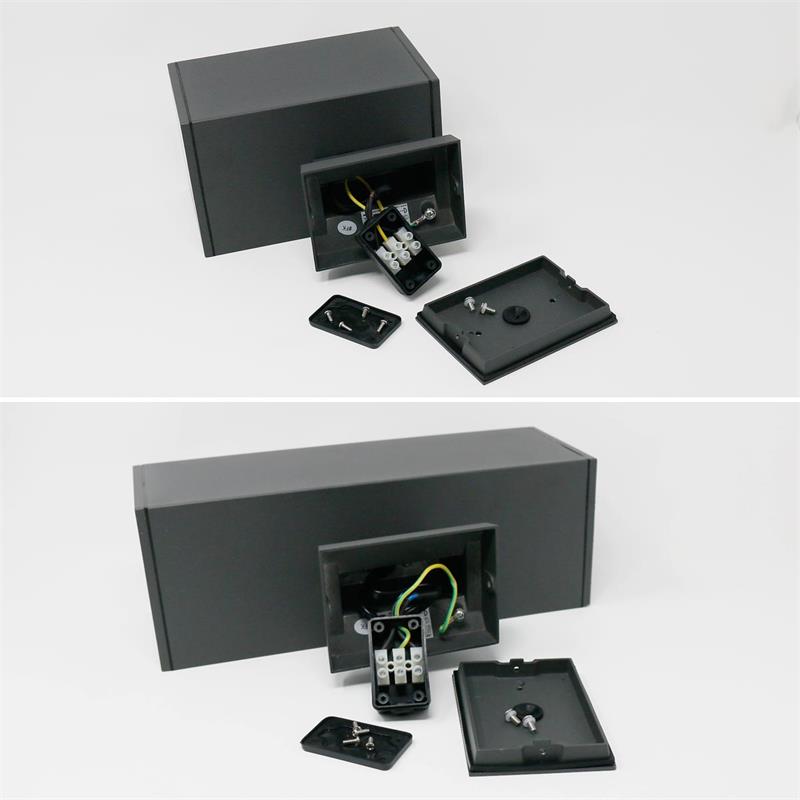 Die Wandleuchte „LART“ überzeugt durch ihr klares, eckiges Design und hochwertige Verarbeitung aus langlebiger Aluminiumlegierung in anthrazit (RAL 7016). Mit der stossfesten Frontplatte aus Echtglas sorgt sie für eine gleichmäßige Lichtverteilung und setzt Außenbereiche wie Hauseingänge, Terrassen oder Fassaden stilvoll in Szene. Die Leuchte ist in zwei Varianten erhältlich: mit einer E27 Fassung für einseitige vertikale Abstrahlung oder mit zwei E27 Fassungen für zweiseitige vertikale Lichtwirkung. Die maximale Leistung für das Leuchtmittel beträgt jeweils 60 Watt. Dank der Schutzklasse IP54 eignet sich die Wandleuchte sowohl für Innen- als auch Außenbereiche. Sie ist gegen Spritzwasser aus allen Richtungen geschützt und bietet vollständigen Berührungsschutz. Die anthrazitfarbene Lackierung schützt das Gehäuse zusätzlich vor Korrosion, sodass die Leuchte auch bei langfristiger Nutzung im Außenbereich ihre Optik behält. Die Befestigung erfolgt über Schraubklemmen an einem Sockel von ca. 110x80x70mm, mit einem empfohlenen Mindestabstand von 0,5m zum beleuchteten Objekt.