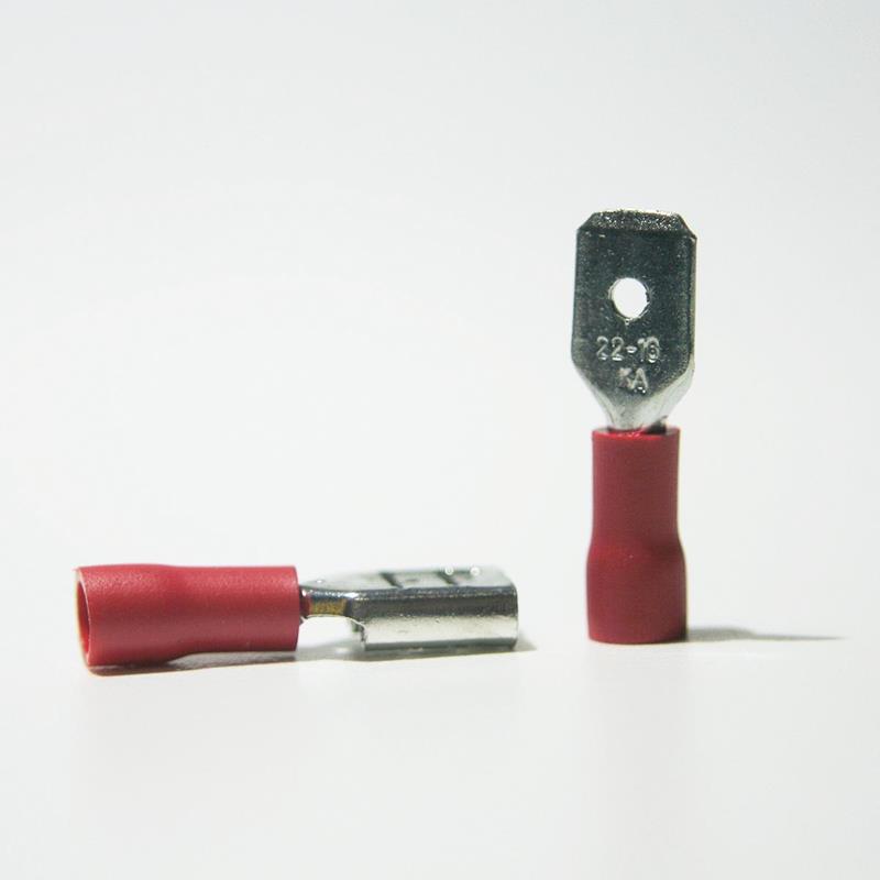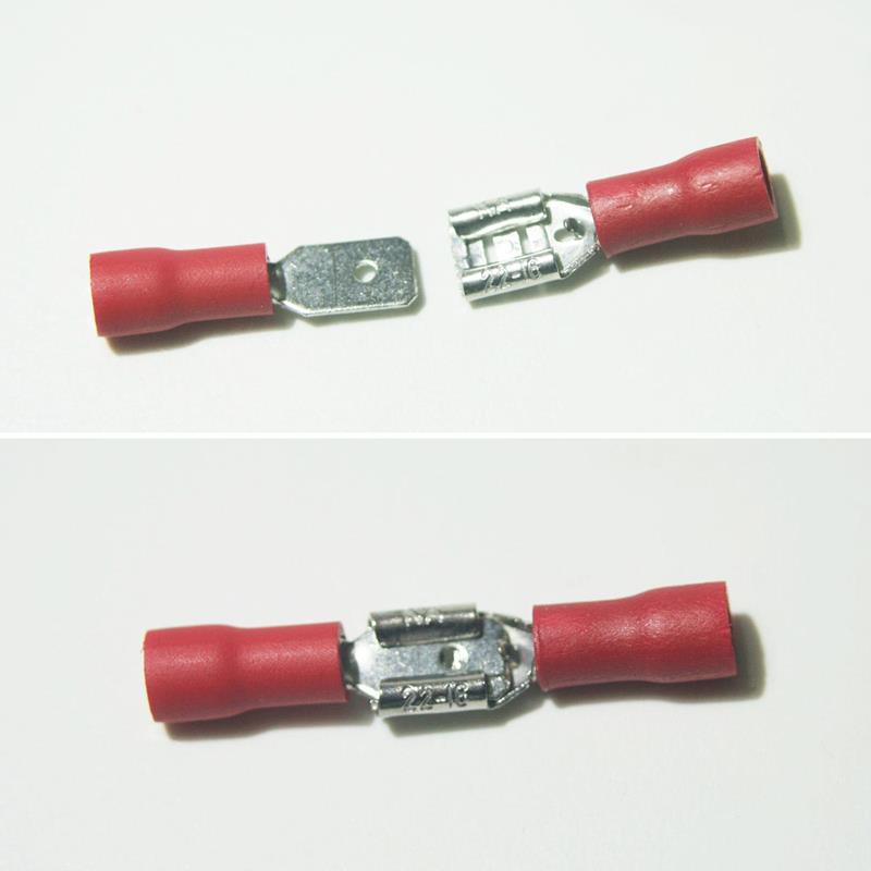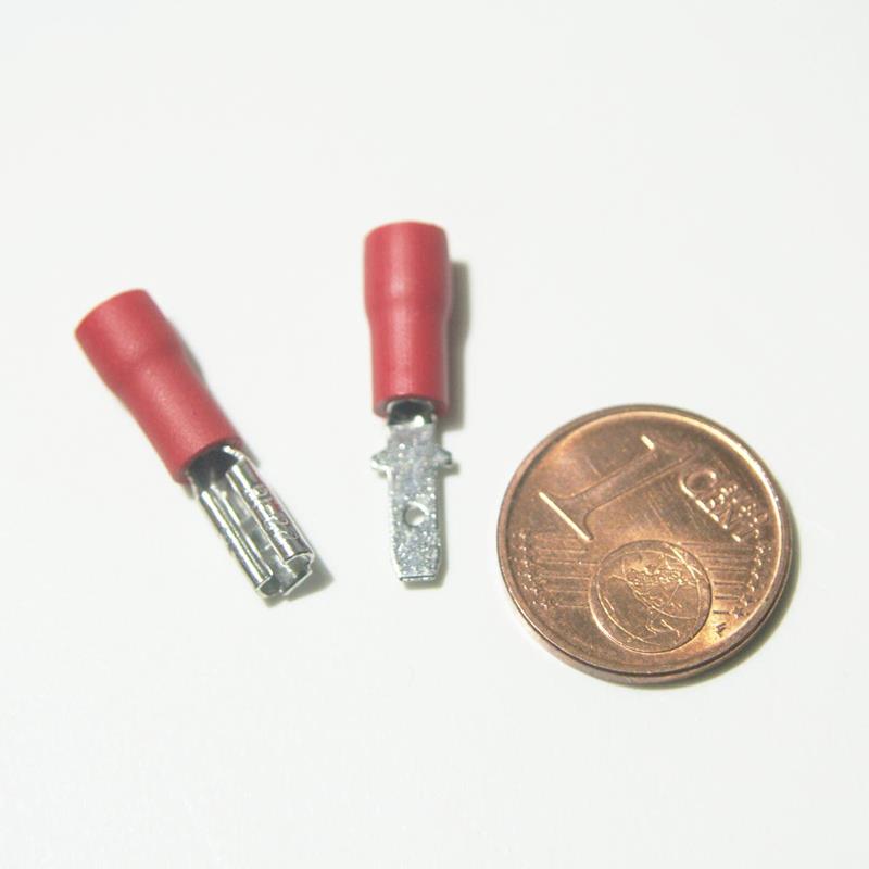 Flachstecker und Flachsteckhülsen ROT, teilisoliert PVC, für Kabelnennquerschnitte von 0,5 bis 1,5mm², verschiedene Abmessungen, zum einfachen und sicheren Verbinden von Kabeln