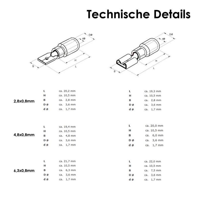 - Maße: 2,8x0,5mm / 4,8x0,5mm / 6,3x0,8mm