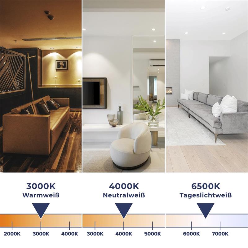 - Farbtemperatur: ca. 3000K / 4000K / 6500K