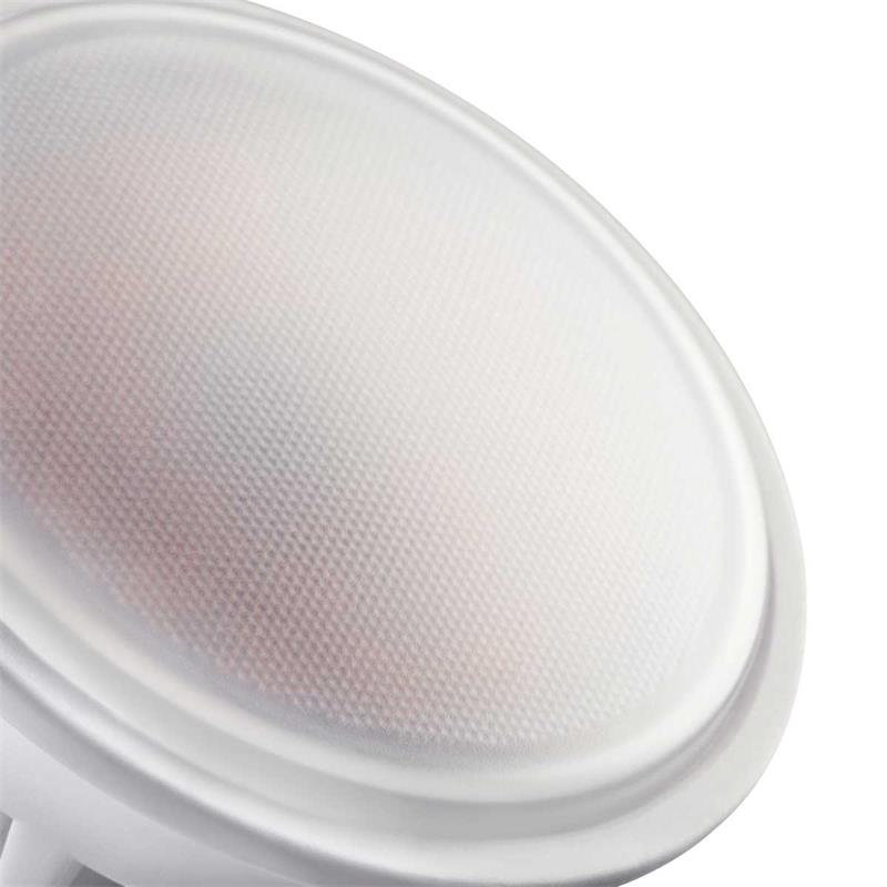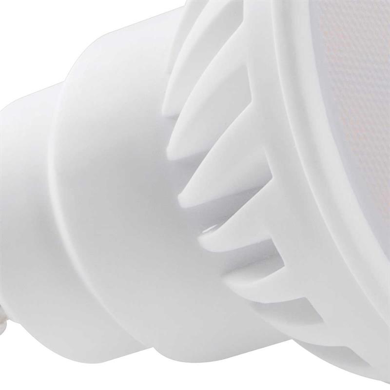 Der GU10 LED Strahler „TEDI MAXX“ ist die moderne Lösung für effiziente Beleuchtung im Wohn- und Arbeitsbereich. Mit einer Leistungsaufnahme von nur 9W ersetzt er klassische 60W Halogenspots und ermöglicht so eine deutliche Stromersparnis bei gleichzeitig hoher Lichtausbeute. Die integrierten SMD LEDs erzeugen einen Lichtstrom von ca. 900lm und sorgen mit einem Abstrahlwinkel von 120° für eine gleichmäßige Ausleuchtung des Raumes. Das weiße Keramikgehäuse stellt dabei nicht nur ein modernes Design-Element dar, sondern bietet durch seine hervorragende Wärmeableitung auch eine besonders lange Lebensdauer der Leuchtmittel. In Kombination mit der mattierten Kunststoffabdeckung entsteht ein angenehm weiches, blendfreies Licht, das je nach gewählter Lichtfarbe gezielt eingesetzt werden kann.