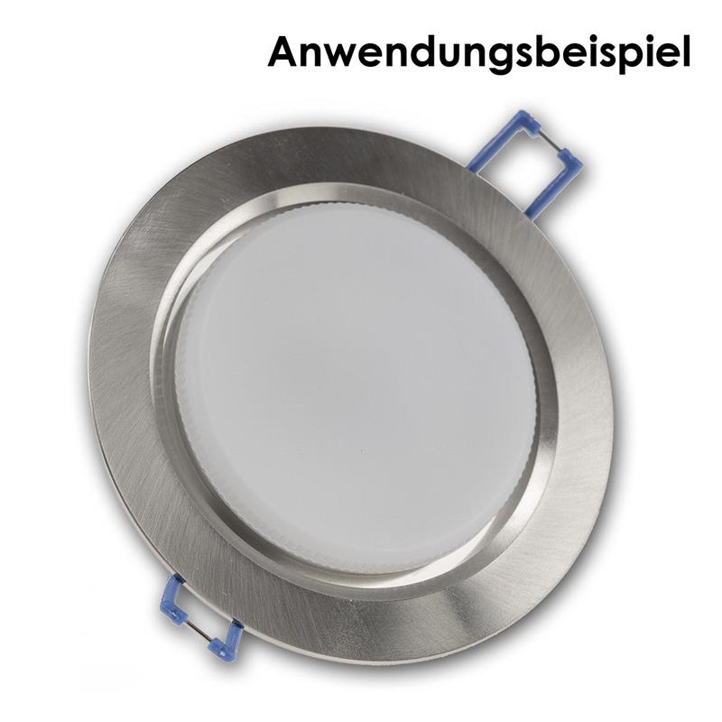 Gefertigt aus gebürstetem Aluminium in silber, überzeugt er durch eine hochwertige Haptik und eine reduzierte, zeitgemäße Optik. Die runde, starre Bauform fügt sich unauffällig in unterschiedliche Raumkonzepte ein und sorgt für eine stabile Aufnahme des Leuchtmittels sowie eine gleichmäßige, großflächige Lichtabstrahlung. Der elektrische Anschluss erfolgt direkt an 230V über eine integrierte Klemmleiste – ein zusätzlicher Trafo wird nicht benötigt. Robuste Haltefedern gewährleisten einen sicheren Halt in der Decke, während der Bajonettverschluss einen schnellen und komfortablen Austausch des GX53 Leuchtmittels ermöglicht. Für maximale Planungsfreiheit ist der Einbaurahmen nicht nur als Einzelartikel, sondern auch in praktischen Sets mit 3, 5 oder 10 Stück erhältlich. Damit eignet sich der Einbaurahmen „CT-DS108“ sowohl für einzelne Lichtpunkte als auch für größere Installationen in Wohnräumen, Büros oder gewerblichen Bereichen – effizient, flexibel und platzsparend.