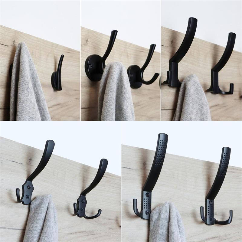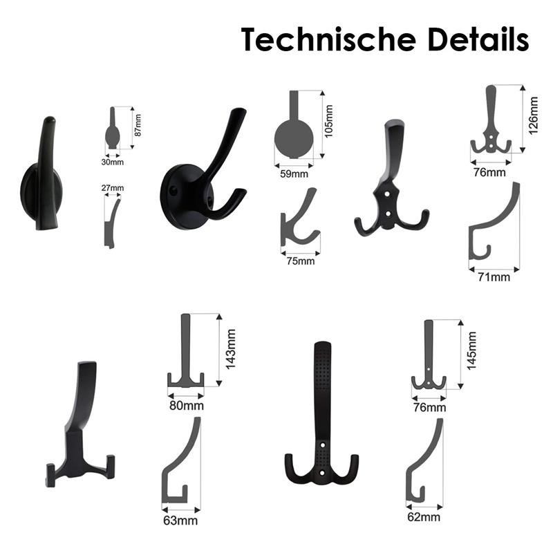 - 1x / 3x / 5x Kleiderhaken "WTN-MH06", schwarz, ZnAl, 80x143x63mm oder
