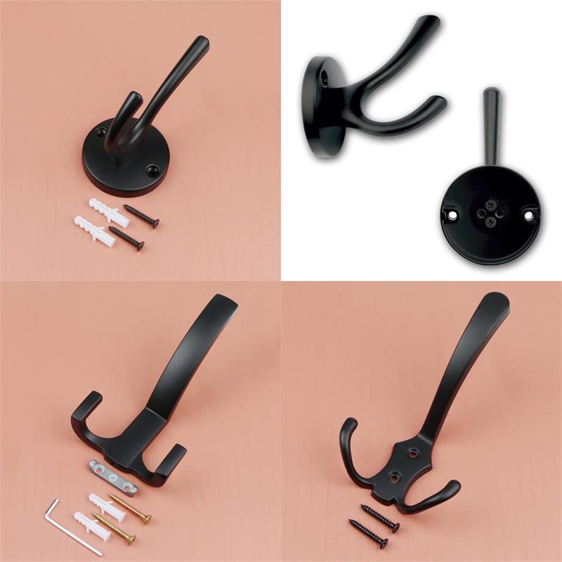 schwarzer Wandhaken mit 1, 2 oder 3 Aufhägern aus einer Zinklegierung gefertig, glatte Oberfläche in mattschwarz, sichtbare oder verdeckte Schraubbefestigung