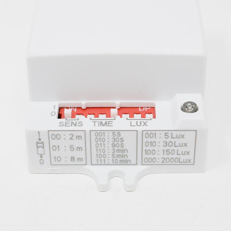 Mikrowellen-Bewegungsmelder 230V/1200W, Erfassungswinkle 360°, Reichweite, Schaltzeit und Empfindlichkeit über Jumper einstellbar, IP20