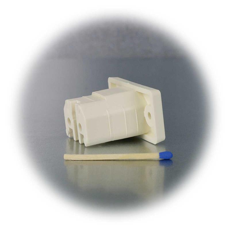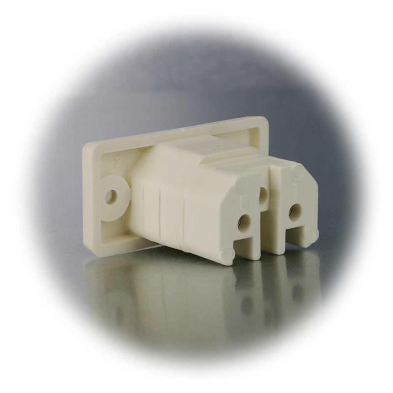- 1x Heißgeräte Einbaubuchse, 230V/10A, Thermoplast, weiß oder