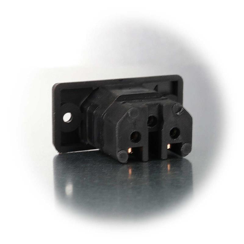 Heißgeräte Einbaubuchse, Material Thermoplast für Stifttemperaturen bis 155°C, 2-fach-Frontverschraubung, zuverlässiger Ersatz bei defekten Einbaubuchsen