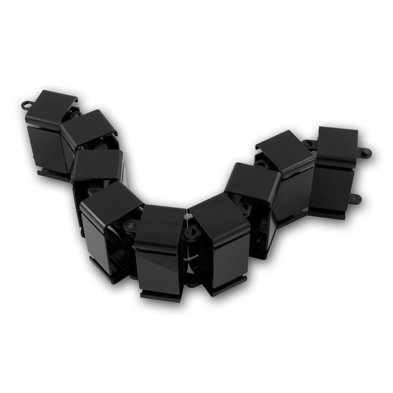 Das flexible Kabelmanagementsystem sorgt für eine aufgeräumte und organisierte Arbeitsumgebung, sowohl zu Hause als auch im Büro. Dank der modularen Kabelelemente kann die Höhe individuell angepasst werden, indem einzelne Glieder hinzugefügt oder entfernt werden. Dieses System bietet Platz für bis zu vier Kabelstränge und gewährleistet eine stabile Kabelführung, unterstützt durch den Standfuß am Boden und die anschraubbare Leiste. Mit einer maximalen Länge von 1,3 Metern eignet es sich besonders gut für höhenverstellbare Schreibtische, da es Kabel effizient vom Boden bis zur Tischplatte versteckt. Durch die hohe Flexibilität passt sich das Kabelmanagement optimal den jeweiligen Anforderungen an.
