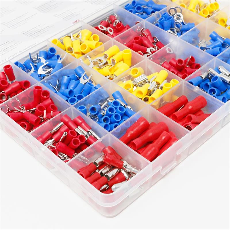 500-teiliges Quetschverbinder-Sortiment 0,5 bis 2,5mm², Gabelkabelschuhe, Ringkabelschuhe, Aderendhülsen, Flachsteckhülsen & -stecker, Rundsteckhülsen & -stecker in Fächern sortiert, zum verpressen/vercrimpen