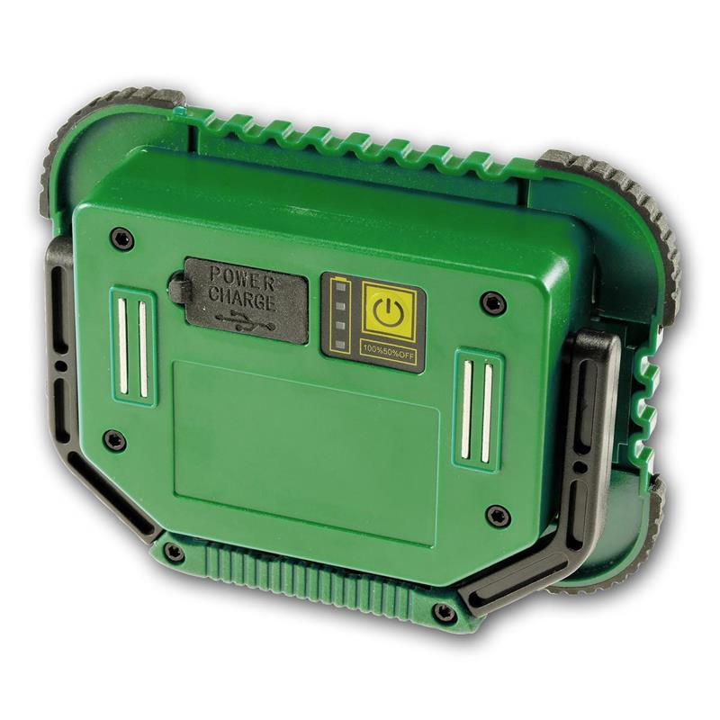 16W LED Baustrahler mit 1200lm, Leuchtfarbe kaltweiß, 2-stufig dimmbar, einstellbarer Standfuß, Aufladen per USB-C, Akkubetrieb