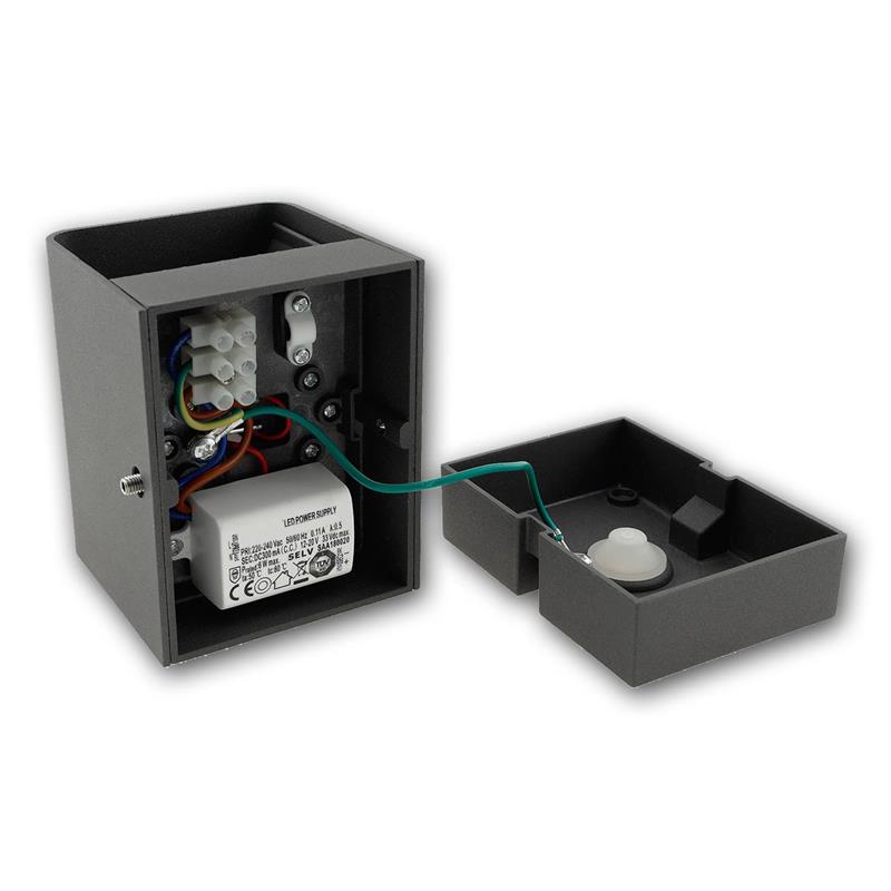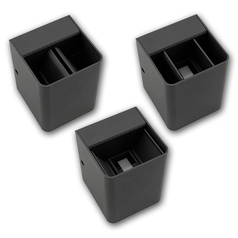 Sanfte Lichtakzente, klare Linien und eine flexible Lichtgestaltung machen die LED Wandleuchte „FACHADA“ zu einem stilvollen Gestaltungselement moderner Architektur. Das harmonische Zusammenspiel aus warmem Licht, minimalistischer Form und präzise steuerbarem Lichtaustritt verwandelt schlichte Wände in lebendige Lichtflächen. Ob an der Hausfassade, im Eingangsbereich oder als dekoratives Element im Innenraum – die Leuchte schafft eine atmosphärische Beleuchtung, die Architektur betont und gleichzeitig für Orientierung sorgt. Das hochwertige Aluminiumgehäuse in Anthrazit unterstreicht den modernen Charakter der Leuchte und fügt sich nahtlos in zeitgemäße Fassaden- und Gartenkonzepte ein. Die kompakte, geometrische Form wirkt zurückhaltend und elegant, während das Licht selbst zum eigentlichen Gestaltungselement wird. Durch das charakteristische Up-&-Down-Light strahlt die Leuchte gleichzeitig nach oben und nach unten und erzeugt ein stilvolles, architektonisches Lichtbild, das Wände strukturiert und Fassaden optisch aufwertet. Im Inneren arbeiten zwei effiziente SMD LED Module mit jeweils 3,5W, die zusammen eine dezente, gleichmäßige Beleuchtung erzeugen. Das warmweißes Licht wird als besonders angenehm und wohnlich wahrgenommen, da es dem warmen Farbton klassischer Glühlampen ähnelt. Diese Lichtfarbe erzeugt eine entspannte, einladende Atmosphäre und eignet sich ideal für Bereiche, in denen eine harmonische Stimmung gewünscht ist – etwa am Hauseingang, auf der Terrasse oder im Wohnbereich. Gleichzeitig sorgt die Beleuchtung dafür, dass Wege, Mauern oder Fassaden klar sichtbar bleiben, ohne blendend zu wirken.