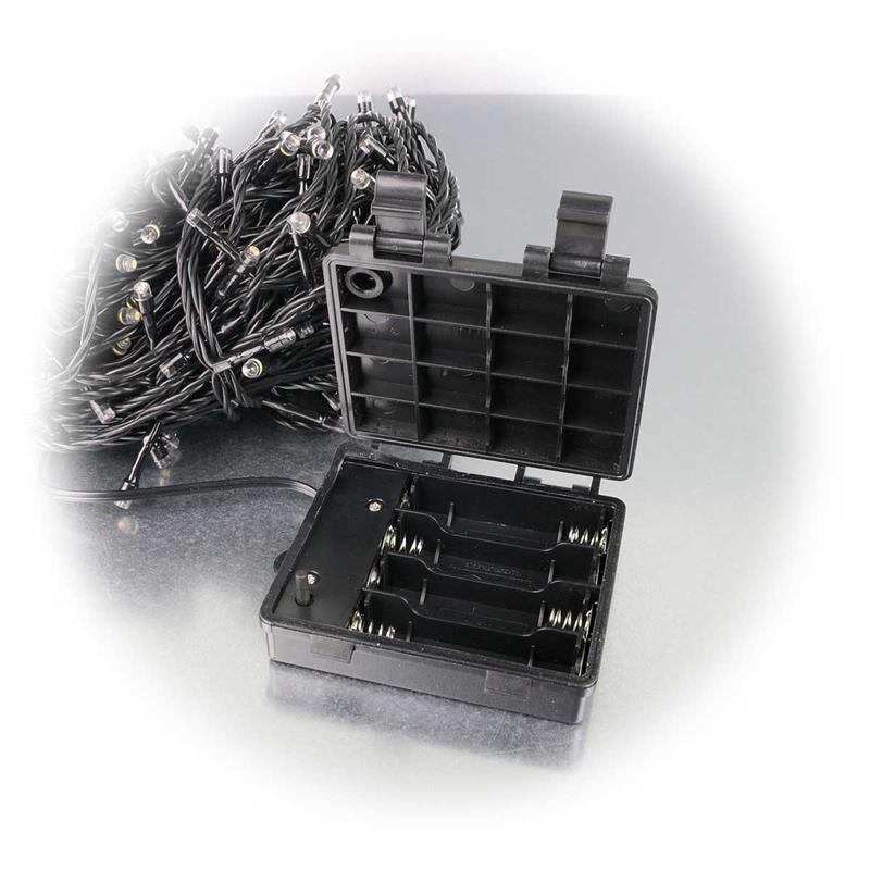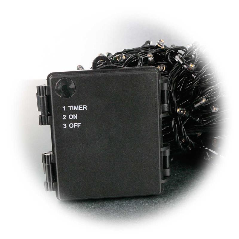 - 1x LED Außen-Lichterkette, 18m, 180 LEDs amber, Timer und Batterie, IP44 oder