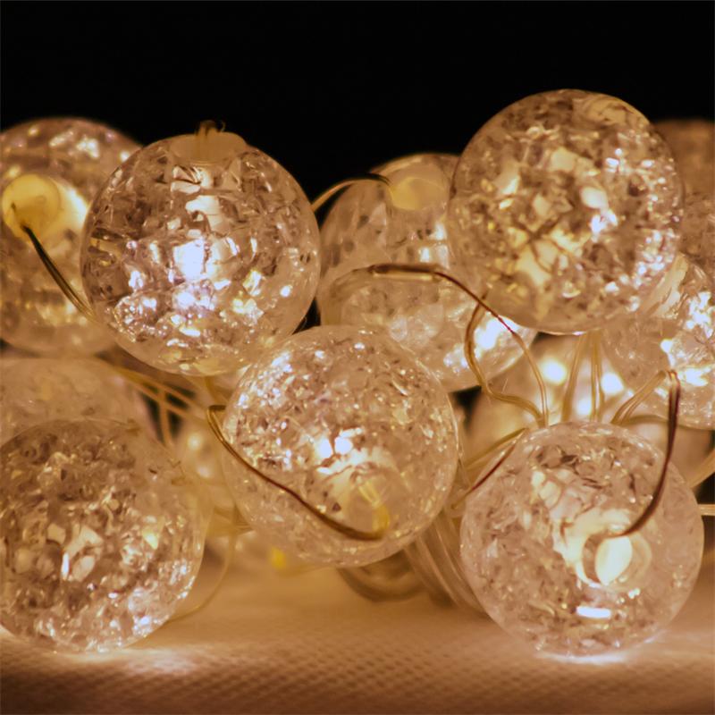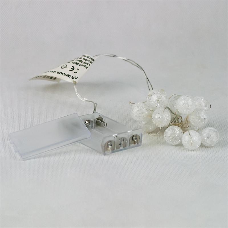 LED Lichterkette mit 15 LEDs in Bruchglas-Kugeln, flexibler Draht, 1,9m Gesamtlänge, batteriebetrieben, für Indoor-Deko