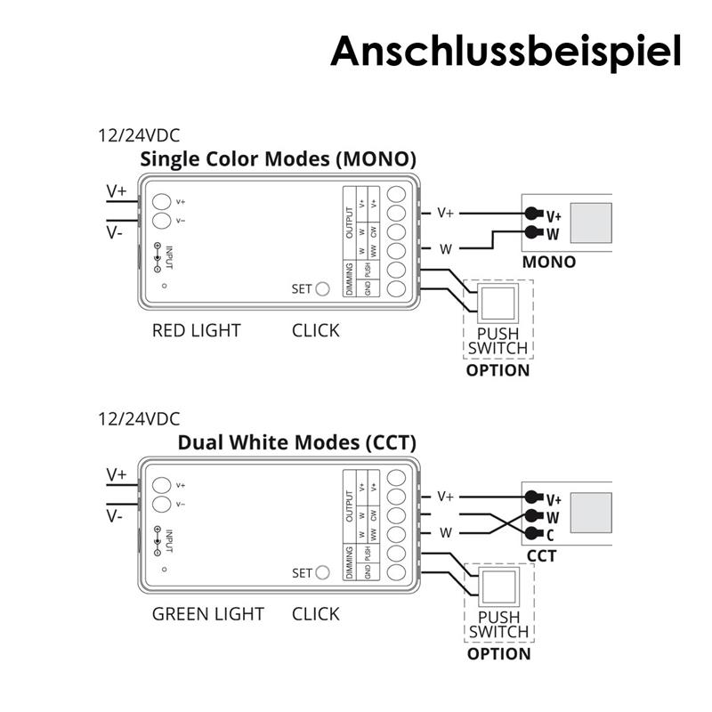 - geeignet zur Steuerung von Mono / CCT LED Streifen