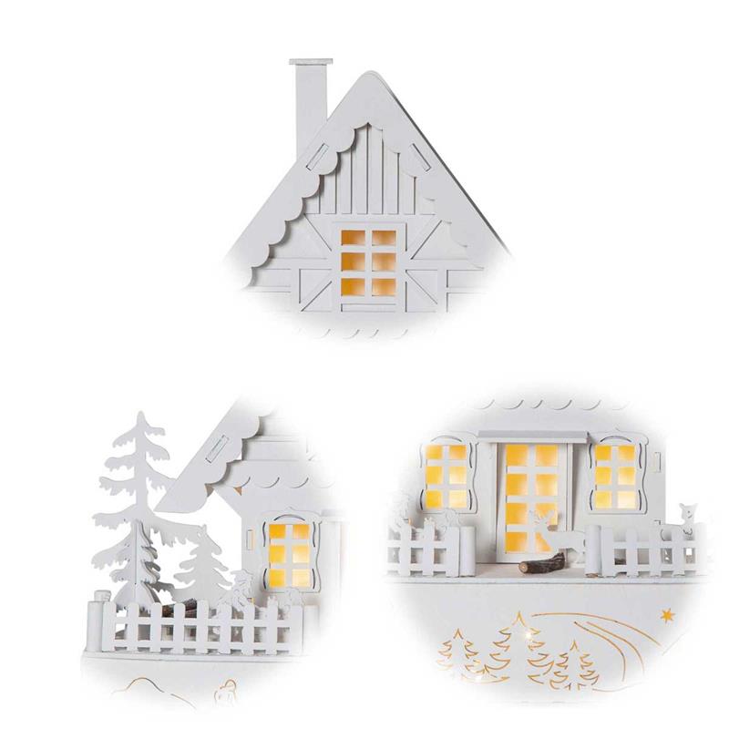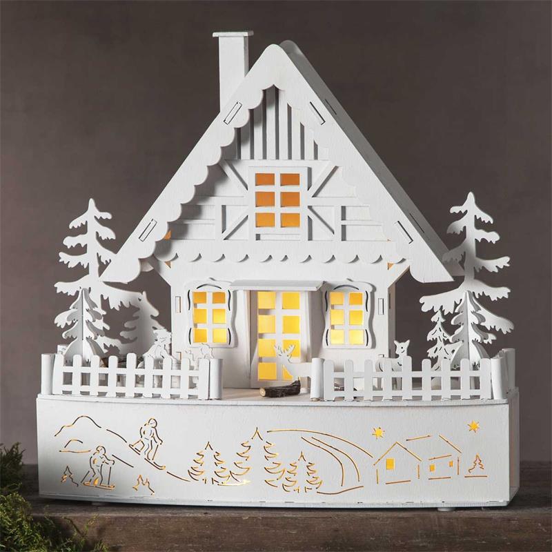 - 1x LED Leuchthaus "Trier", weißes Haus, aus Holz