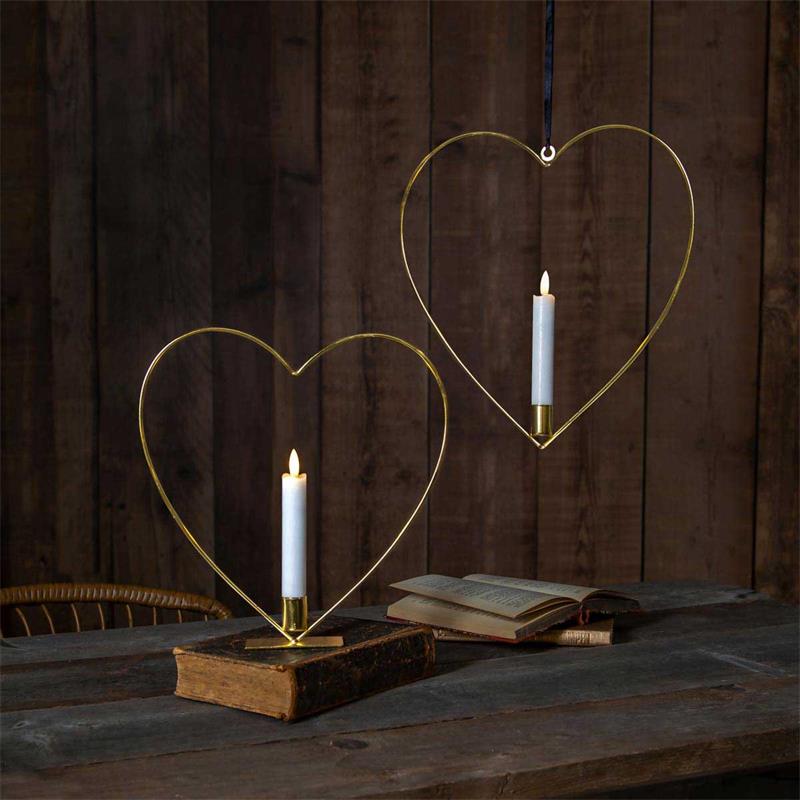 - 1x LED Kerze "Flamme Table", mit Herz, Messing oder