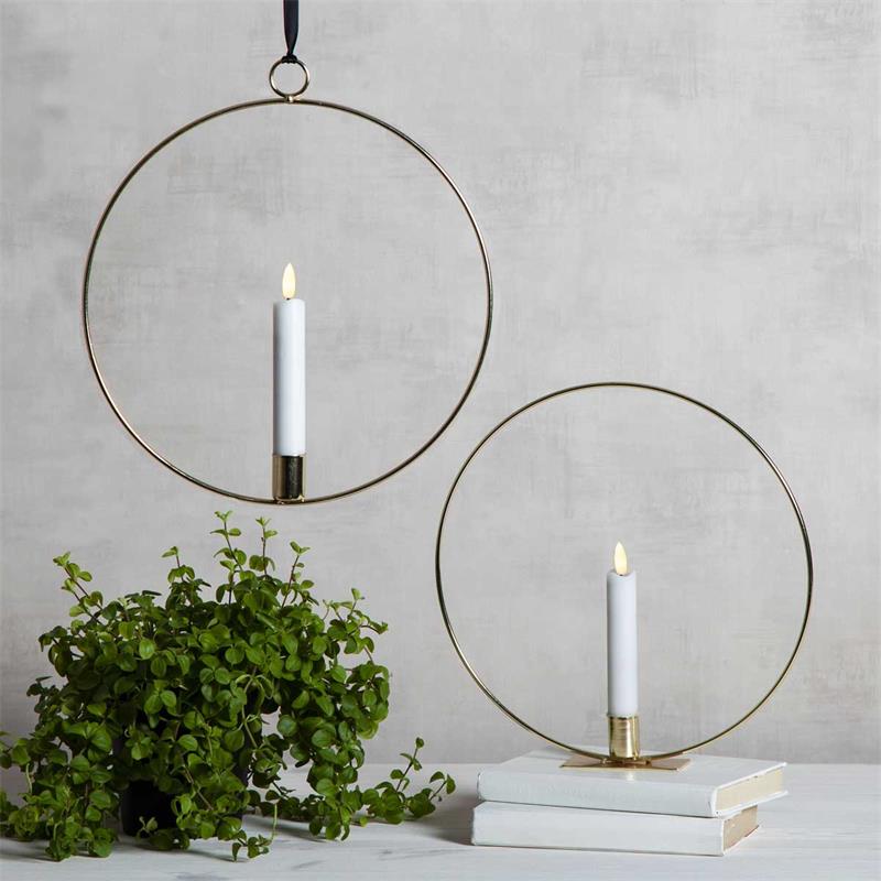 - 1x LED-Kerze "Flamme Table", mit Ring Ø 28cm, Messing oder