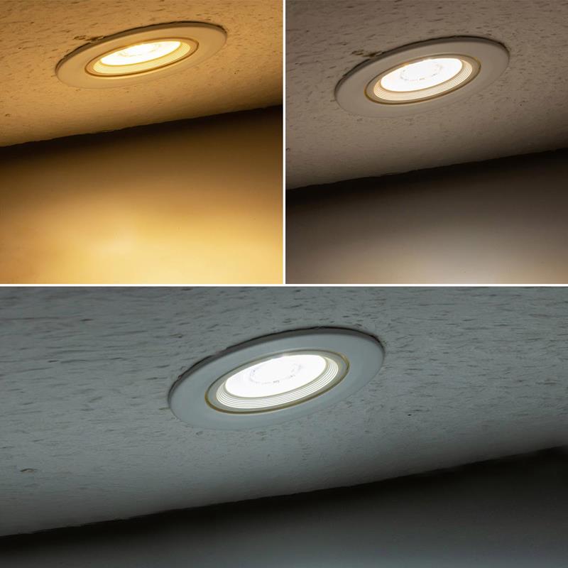 Diese schwenkbare LED Decken-Einbauleuchte kombiniert moderne Lichttechnik mit hoher Flexibilität und einem besonders schlanken, zeitgemäßen Design. Durch ihre extrem flache Bauform eignet sie sich ideal für den Einbau in abgehängte Decken und Zwischendecken und ist selbst bei geringer Einbautiefe problemlos montierbar. Der integrierte LED Treiber ermöglicht den direkten Anschluss an 230V, sodass kein zusätzlicher Trafo benötigt wird. Das vereinfacht die Installation deutlich und sorgt für ein sauberes, aufgeräumtes Deckenbild ohne sichtbare Technik. Ein zentraler Vorteil dieser Einbauleuchte ist ihre vielseitige Einstellbarkeit. Über integrierte Schiebeschalter lassen sich sowohl die Lichtfarbe als auch die Leistung individuell anpassen. Dadurch kann dieselbe Leuchte flexibel an unterschiedliche Räume, Nutzungen und Lichtanforderungen angepasst werden. Zur Auswahl stehen drei Farbtemperaturen – von warmweiß für eine gemütliche, wohnliche Atmosphäre über neutralweiß für eine natürliche und ausgewogene Ausleuchtung bis hin zu kaltweiß für eine klare, funktionale Beleuchtung in Arbeits- oder Gewerbebereichen. Zusätzlich lässt sich die Leistung in drei Stufen regulieren, sodass die Helligkeit je nach Bedarf angepasst werden kann. Je nach Einstellung erreicht die Leuchte einen Lichtstrom von bis zu 430 Lumen bei gleichzeitig effizientem Energieverbrauch.