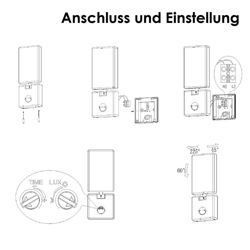 Besonders flexibel zeigt sich der verstellbare Lampenschirm. Mit einer horizontalen Ausrichtung von 225° nach links und 45° nach rechts sowie 60° vertikal lässt sich der Lichtkegel präzise auf Haustür, Klingelschild, Einfahrt oder Sitzbereich lenken. So entsteht eine Beleuchtung, die sich nicht aufzwingt, sondern intelligent anpasst – individuell, durchdacht und komfortabel. Der integrierte PIR Bewegungsmelder mit einer Reichweite von bis zu 9m erhöht Sicherheit und Energieeffizienz gleichermaßen. Sobald eine Bewegung erkannt wird, schaltet sich das Licht automatisch ein. Lichtempfindlichkeit und Leuchtdauer (10 Sekunden bis 5 Minuten) lassen sich exakt einstellen. Die LED Fassadenleuchte leuchtet nur dann, wenn sie gebraucht wird – effizient, zuverlässig und beruhigend zugleich. Mit der Schutzart IP65 ist die Leuchte optimal gegen Staub und Strahlwasser geschützt und damit ideal für den ganzjährigen Einsatz im Außenbereich geeignet – selbst an ungeschützten Fassaden. Wind, Regen oder Temperaturschwankungen können ihr nichts anhaben. Auch optisch fügt sie sich perfekt in unterschiedliche Architekturkonzepte ein. In Weiß wirkt sie besonders harmonisch an hellen Fassaden und modernen Neubauten – dezent, klar und freundlich, sodass das Licht selbst im Vordergrund steht. In Anthrazit entfaltet sie eine elegante, zeitgemäße Ausstrahlung, die hervorragend mit Aluminium-Elementen, Glasflächen oder dunklen Fensterrahmen harmoniert und der Fassade eine hochwertige Note verleiht. In Schwarz setzt sie einen selbstbewussten, markanten Akzent: Der starke Kontrast zu hellen Wänden unterstreicht eine moderne Architektur und verleiht Eingangsbereichen eine besonders edle, designorientierte Wirkung.