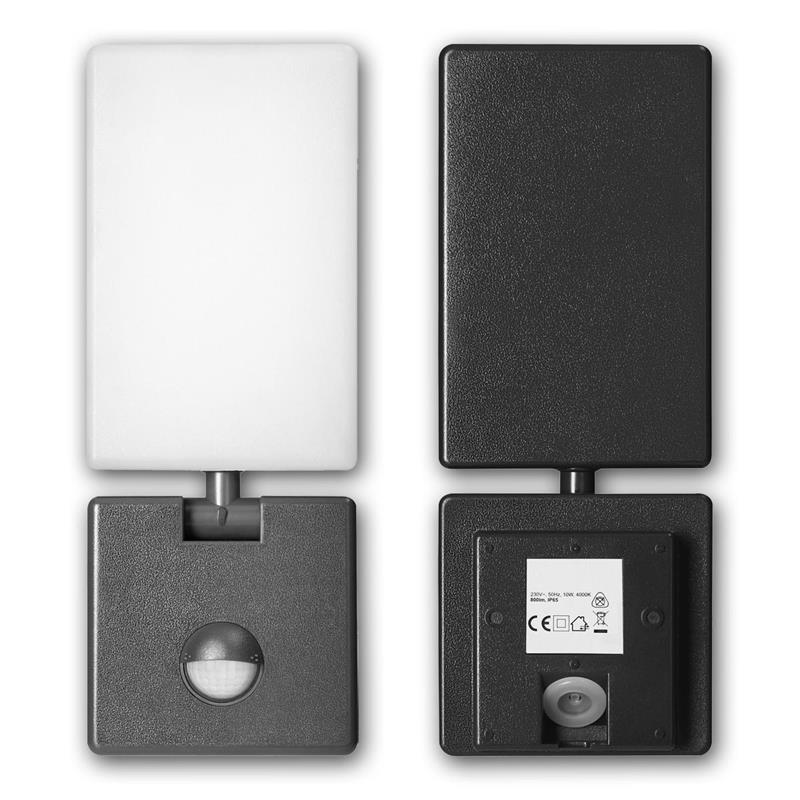 - 1x LED Außenleuchte "ENID", PIR Sensor, 230V/10W, 800lm, anthrazit, IP65 oder